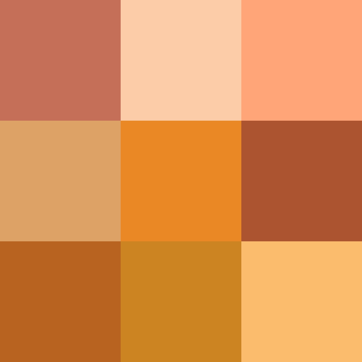 - علاوة على ذلك هناك الدرجة الداكنة وتكون مائلة للون البرتقالي الفاتح، وتلائم الاكسسوارات وبعض الملابس.