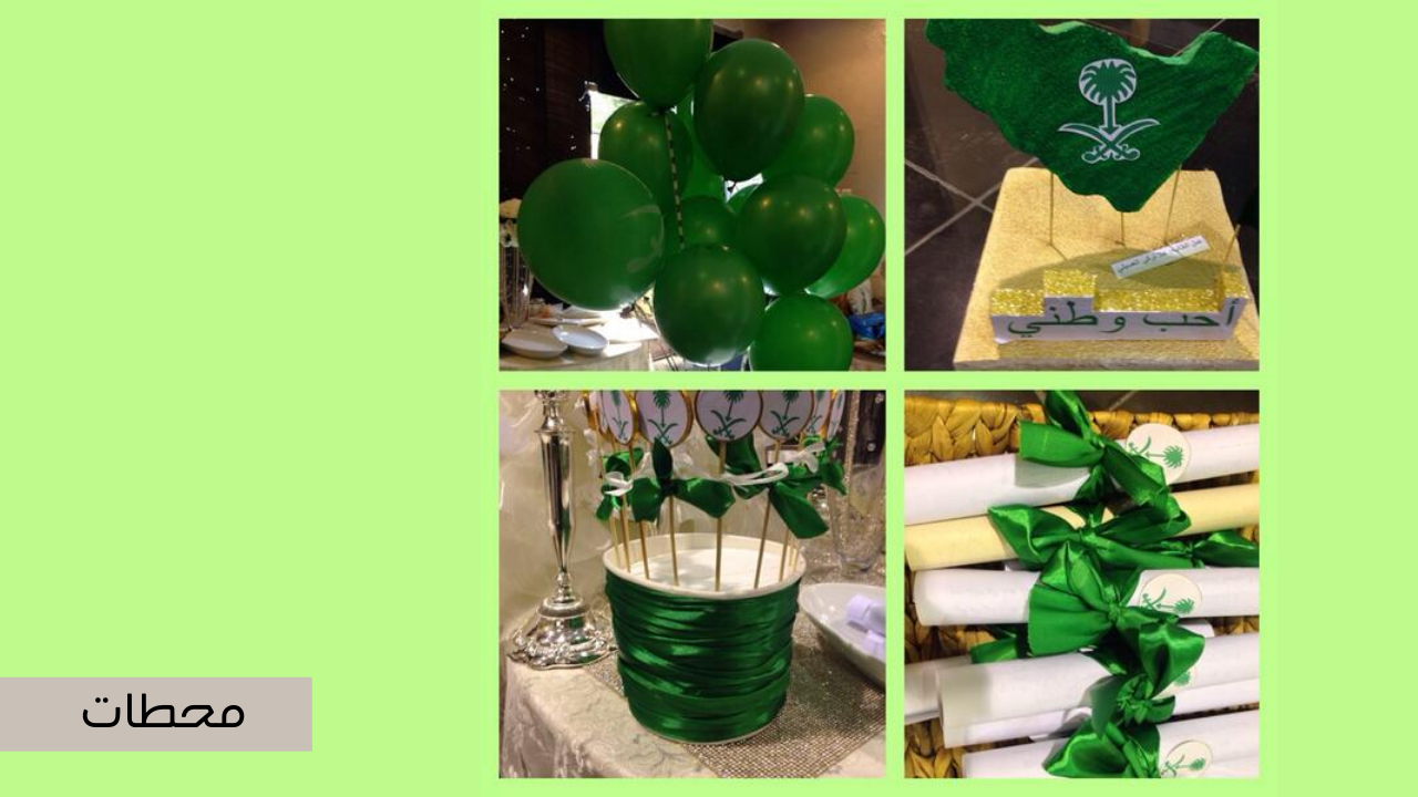 - كذلك من ضمن أفكار توزيعات يوم التأسيس توزيع بالونات باللون الأخضر واللون الأبيض.
