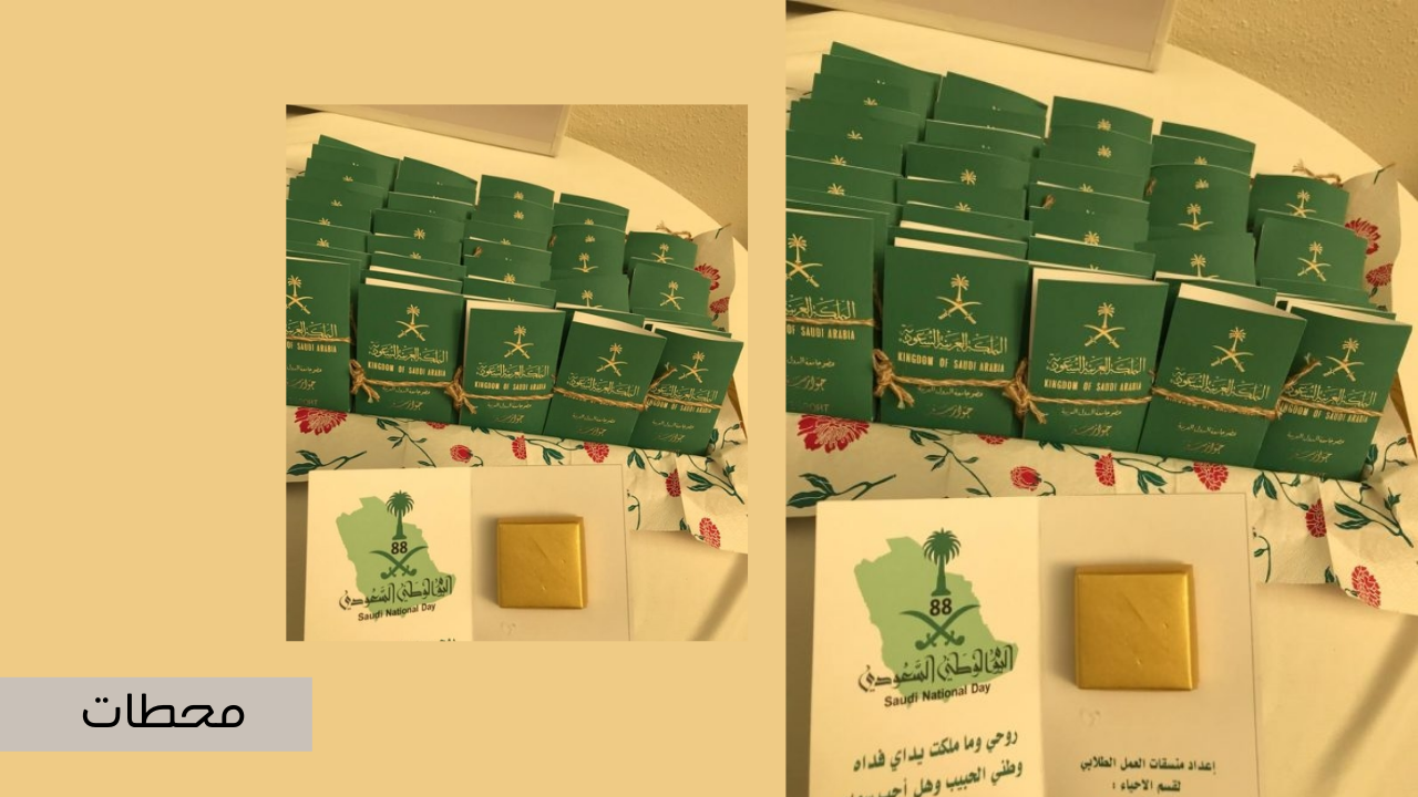 - أيضاً توزيع دفاتر تحمل شعار يوم التأسيس السعودي.