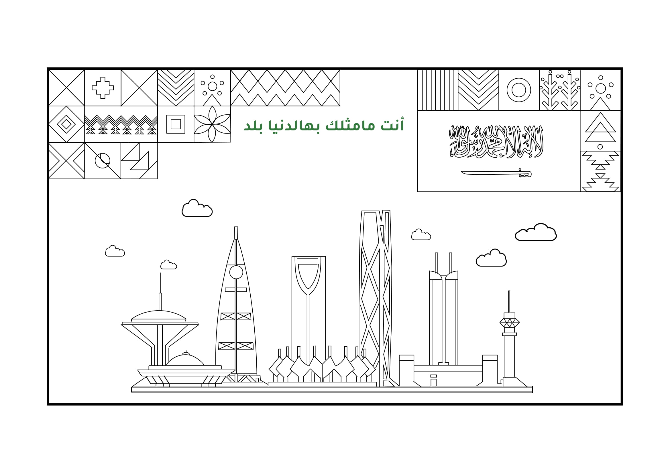 رسومات للتلوين عن يوم التأسيس للأطفال
