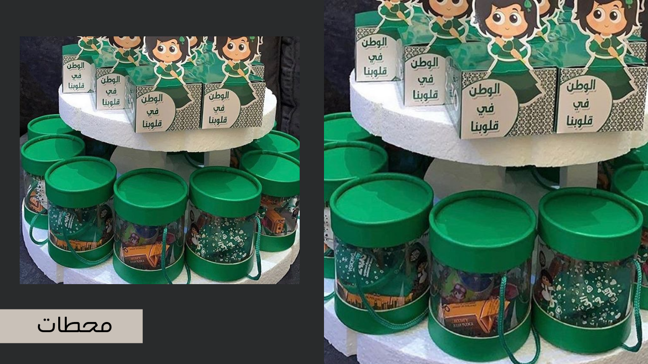- كذلك يمكن توزيع هدايا وحلوى مغلفة بألوان العلم السعودي.