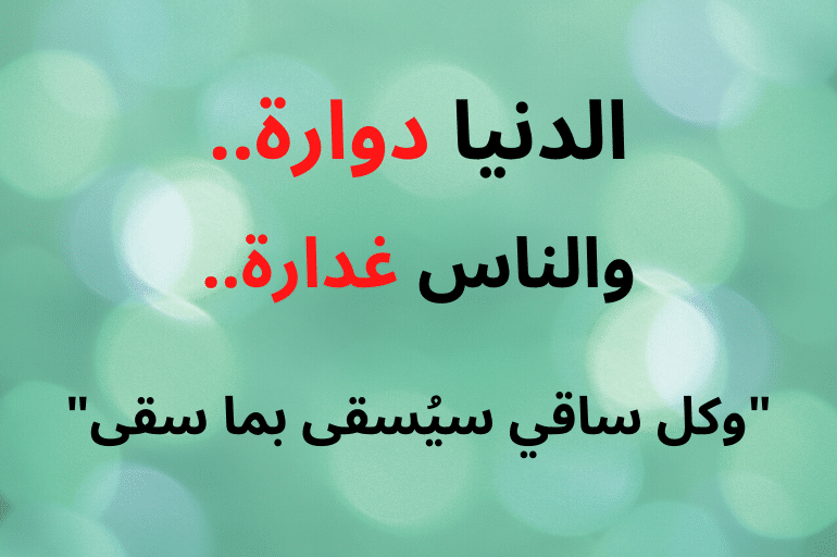 - الدنيا دوارة والناس غدارة، وكل ساقي سيُسقى بما سقى.
