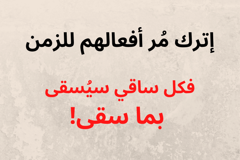 - إترك مُر أفعالهم للزمن، فكل ساقي سيُسقى بما سقى.