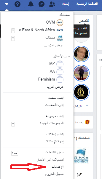 • الذهاب إلى إشارة السهم السفلي (إعدادات الحساب) الموجودة في الشريط العلوي من الناحية اليسرى في الصفحة الرئيسية.