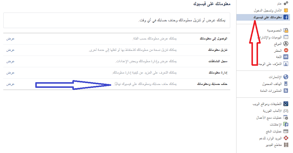 حذف حساب فيسبوك نهائياً بالخطوات3– ومن ثم “معلوماتك على فيسبوك“.