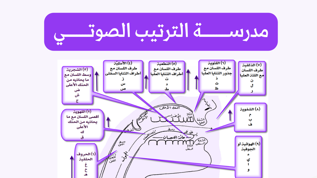 - قائمة الأصوات الذلقية: (ر، ل، ن).
