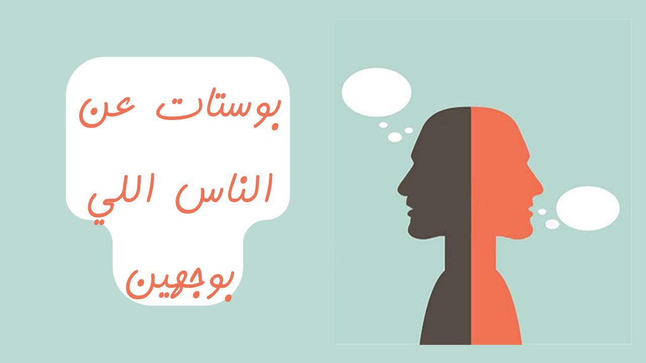 يتدفق في حياة الإنسان الكثير من الأشخاص الذين لا يمتلكون هدفاً في حياتهم، ولا يعلمون لأي وجهة يتجهون، وهذا الأمر يعمل على اضعاف شخصيتهم بدرجة كبيرة جداً، ويؤدي لترك الكثير من الصفات الغير محمودة فيهم، حيث تتولد في بعضهم الكثير من مشاعر الحقد والغيرة على غيرهم من الناجحين، لهذا يقابلونهم بوجهٍ يختلف تماماً عن الوجه الذي يخفونه عنهم، ولهذا تتعدد البوستات التي تتحدث عن الناس اللي بوجهين، ومنها: