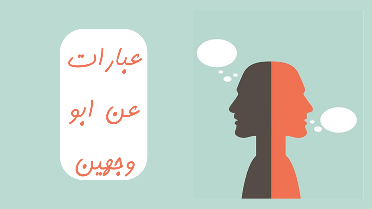 يُعرف الشخص أبو وجهين بأنه الشخص المنافق والكاذب الذي يتعامل مع الآخرين مُخفياً المشاعر الحقيقة الخاصة به، ولهذا يتعامل بوجه معهم ويخفي عنهم وجهاً آخراً يختلف تماماً عن الوجه الظاهر لهم، كما أنه يسرد لهم الكثير من الأحاديث العذبة والجميلة ويخفي في قلبه الأحاديث التي تحفل بالكراهية والحقد والشر أيضاً، ولهذا فإن نهاية أبو الوجهين لن تكون نهاية سعيدة أبداً، حيث أنه لن يجد من يقف معه ويسانده تبعاً لتصرفاته، وفيما يلي نرفق عبارات عن ابو وجهين: