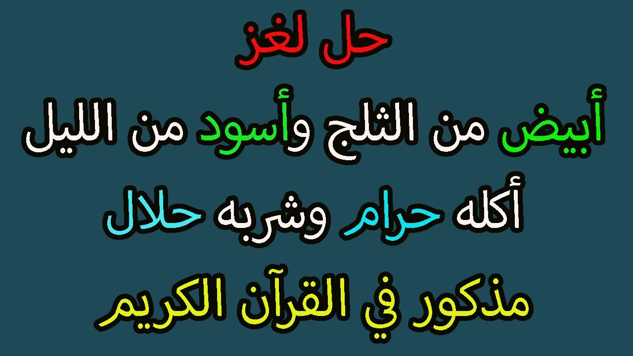 حل لغز ابيض من الثلج واسود من الليل اكله حرام وشربه حلال