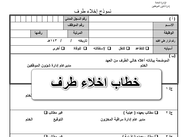 نموذج اخلاء طرف موظف قطاع خاص جاهز
