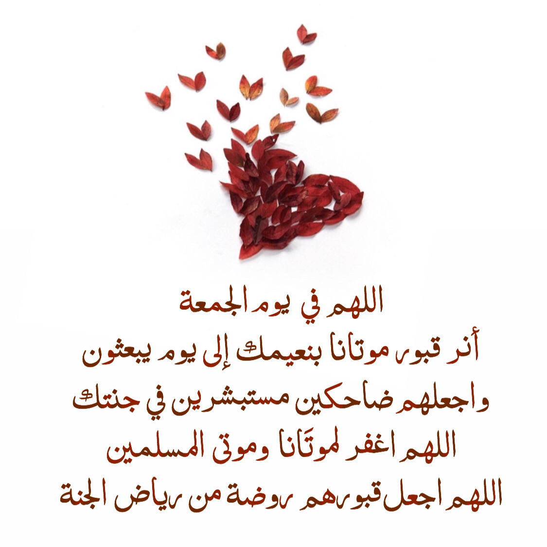 بجناتك و اجبر قلبنا بعدهم. - علاوة على ذلك ندعو الله “اللهم في يوم الجمعو ارحم من ضمة التراب و اشفي من انهكة الوجع و أغث من أثقلة