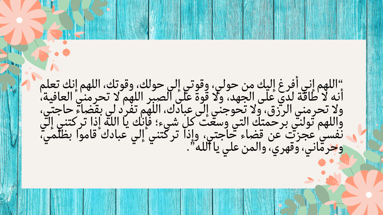 - اللهمّ في الجمعة الأخيرة أسألك أن تمدّني بالقوّة من عندك فلا حول لي ولا قوة إلّا بك، اللهم ألهمني الصّبر