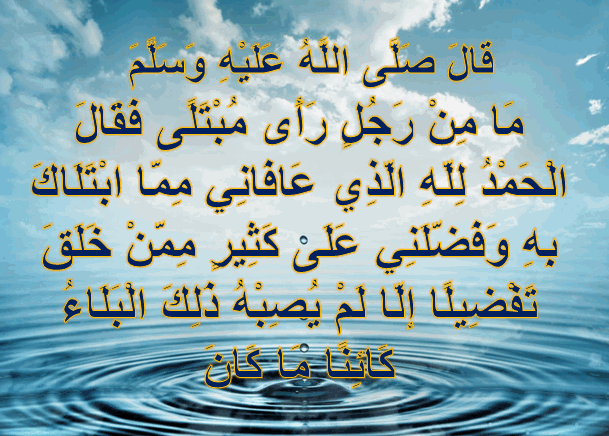 - “الحمدّ لله الذي عافانا مما ابتلى به غيرنا وفضلنا على كثيرًا ممن خلق، وجعلنا من عباده الصالحين المتقين المقربين منه”.