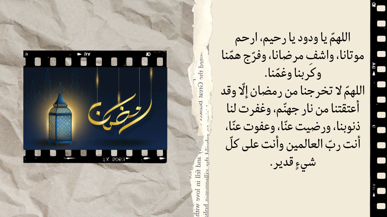 - كذلك اللهمّ لا تخرجنا من رمضان إلّا وقد أعتقتنا من نار جهنّم.. وغفرت لنا ذنوبنا.. ورضيت عنّا، وعفوت عنّا، أنت ربّ العالمين وأنت على كلّ شيءٍ قدير.