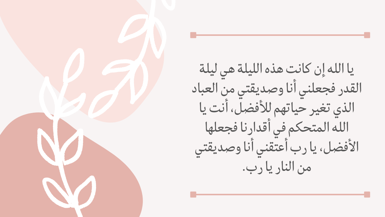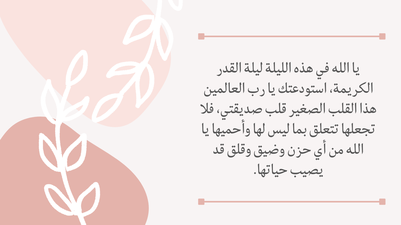 - بالإضافة إلى اللهم في ليلة القدر اني استودعتك قلب صديقتي واختي من الهم والحزن فأبعد عنها كل ضيق.