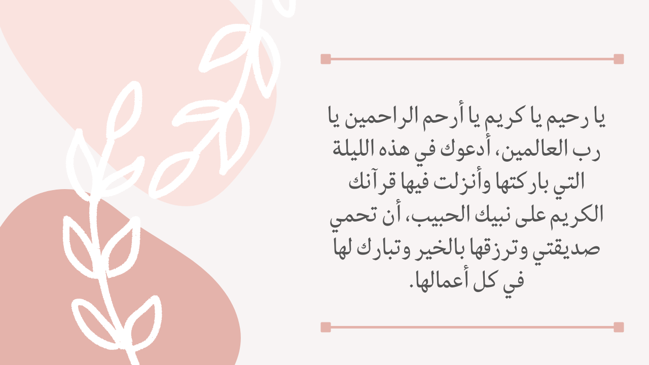 - بالإضافة إلى في ليلة القدر المباركة من شهر رمضان الفضيل أدعوك اللهم أن تحمي صديقتي من كل أذى.