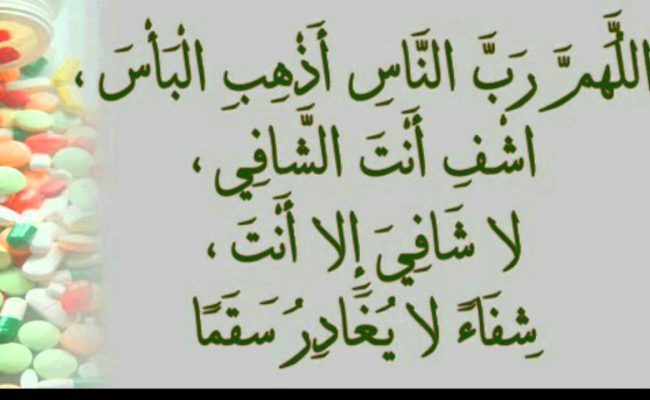 - إلهي أذهب البأس ربّ النّاس، اشف وأنت الشّافي، لا شفاء إلا شفاؤك، شفاءً لا يغادر سقمًا، أذهب البأس ربّ النّاس، بيدك الشّفاء.