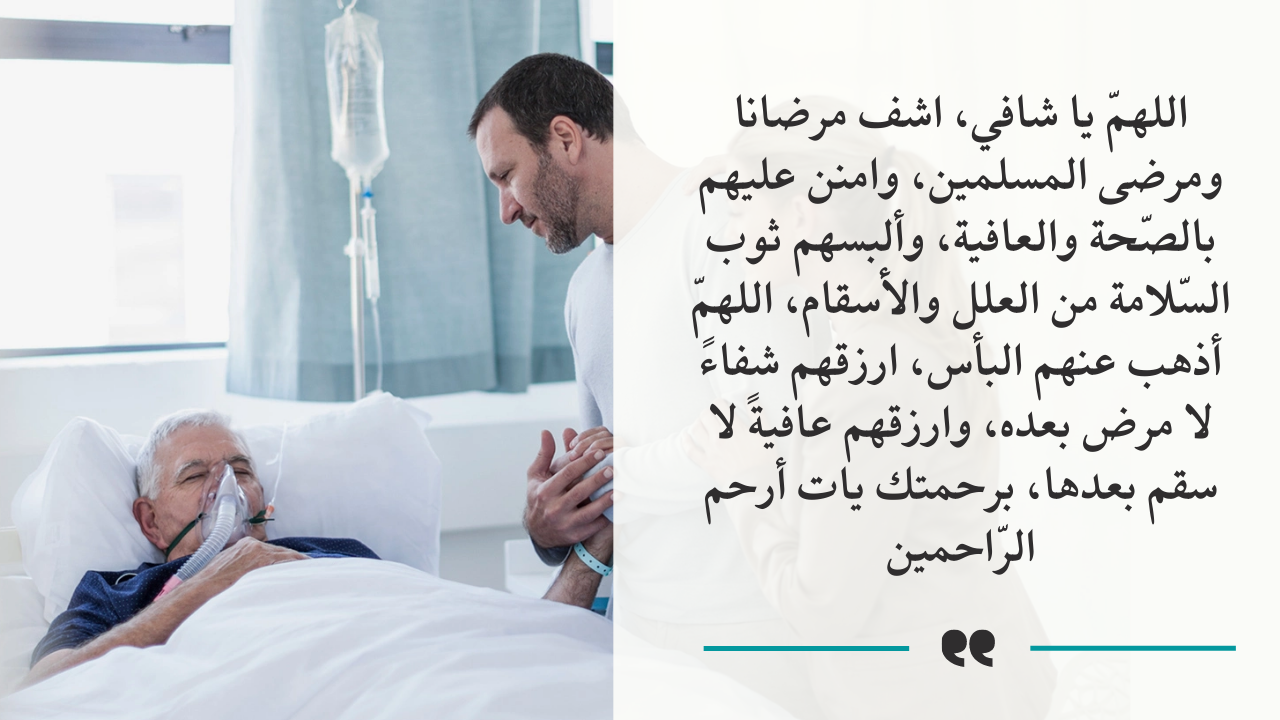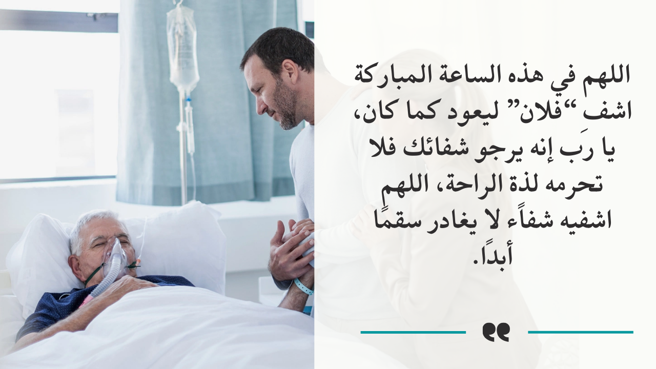 - بالإضافة إلى اللهم وإن طال بهم الداء ودعوناك طلباً للشفاء ..فلا ترد لنا اللهم وبث في جسده عافيه لا يتبعها أَذًى.