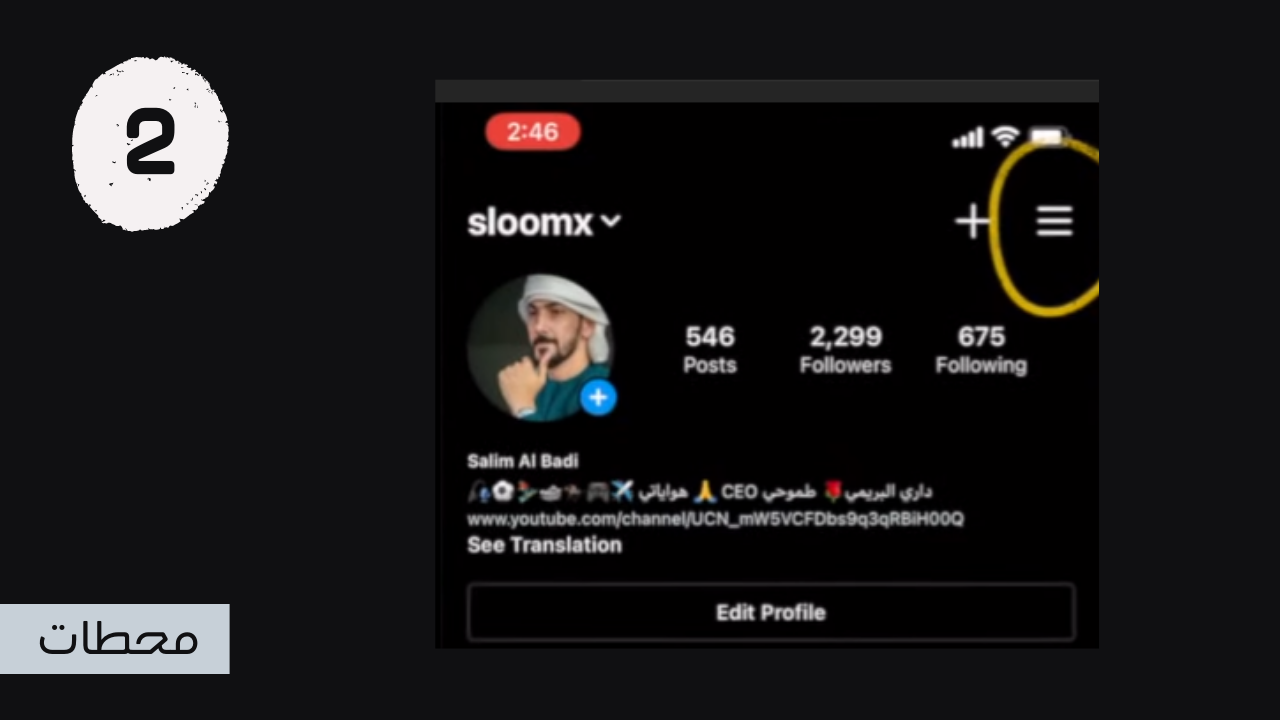 - ثم التوجه إلى الملف الشخصي بالحساب والنقر على 3 شرائط في زاوية الحساب.