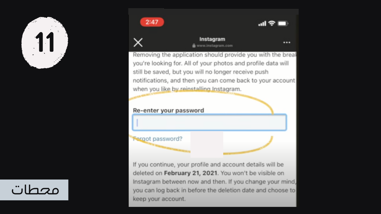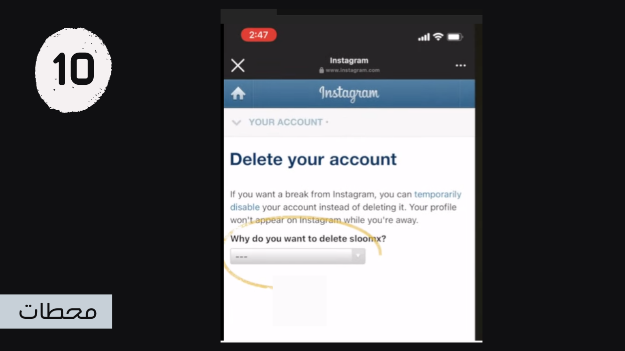 - كذلك لابد من بيان سبب لحذف النهائي لحساب انستقرام.