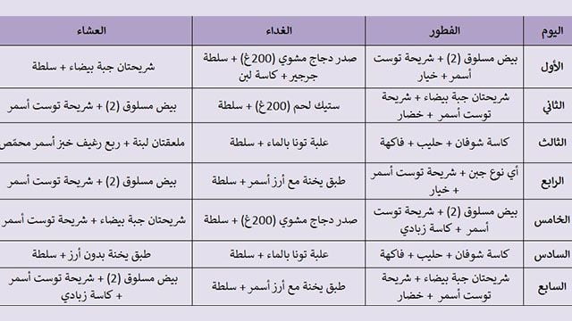 جدول رجيم للمبتدئين سهل وغير مكلف