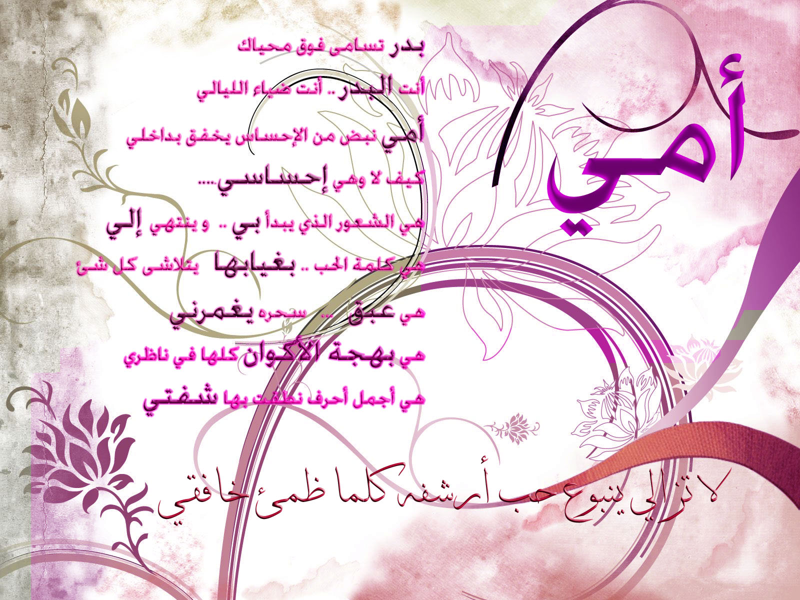 - أراك اليوم أجمل من رأيت ومن كفيك طهراً ارتويت، لئن قالوا: الحياة، أقول: أمي بحب منك يا نبعي استقيت.