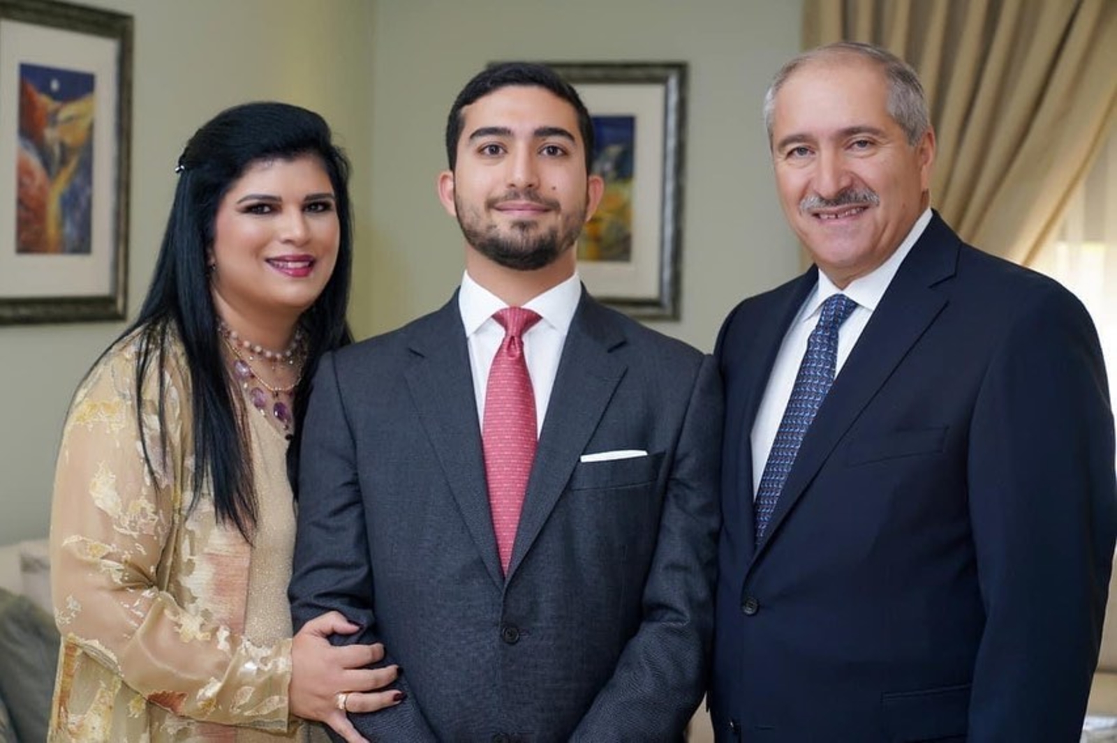 - حيث انه تزوج ابوه اخت السيد سمير الرفاعي، وكذلك تزوج هو من الأميرة سمية ابنه الأمير الأردني الهاشمي الحسن بن طلال.