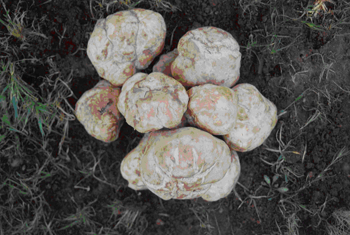 - علاوة على ذلك يتم جني الثمرة بعد أن تتشقق الأرض وتكون هذه التشققات بارزة.