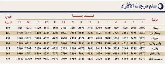 - وجندي من الدرجة السادسة يتقاضى راتب 3870 ريال سعودي.