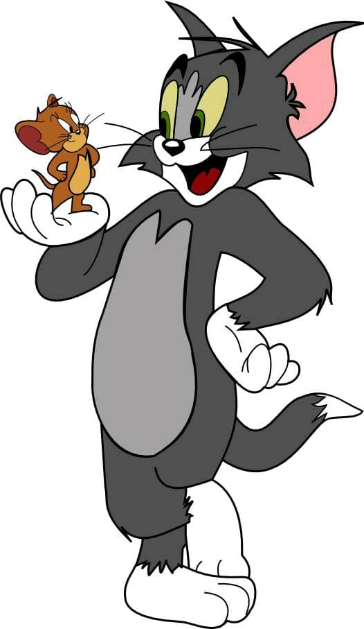 - تدور قصة كرتون أفلام توم وجيري حول مشاكسات وصراع بين القط توم والفأر جيري.