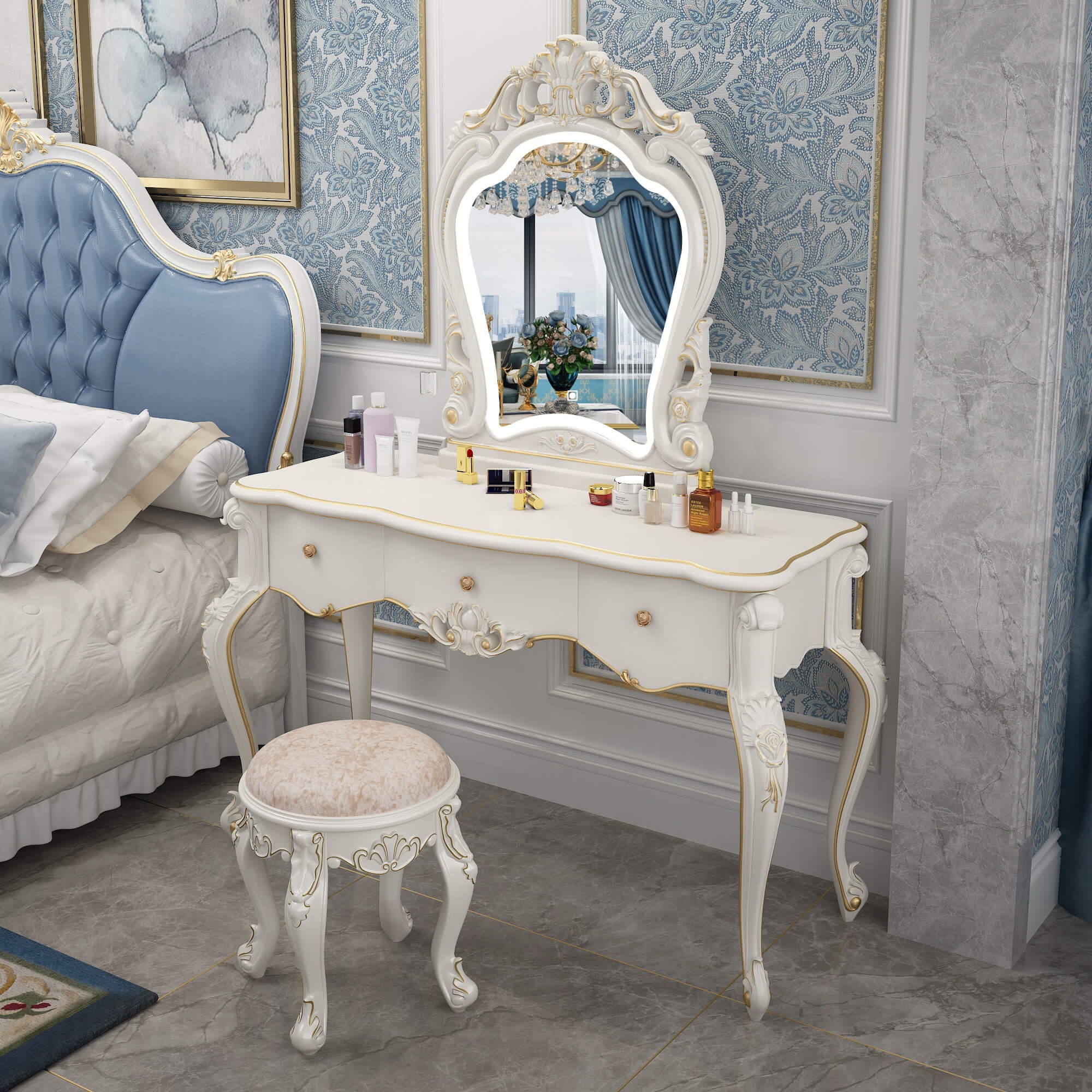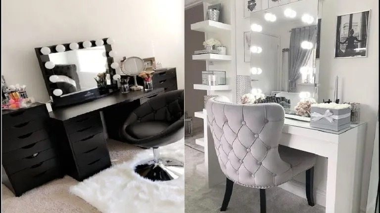 وهي التي عادةً تأتي بالكثير من الأشكال الرائعة، والأدراج المتناسقة من حيث الحجم، كذلك أنها تكون هي متراصة بعضها بجانب بعض، ومن أهم ما يميزها أنها تأتي باللون الأبيض، والتي تشتمل كذلك على المرآة بالأشكال المختلفة، وفي السياق نضع لكم صور تسريحات غرف نوم ناعمة 2025، وهي:
