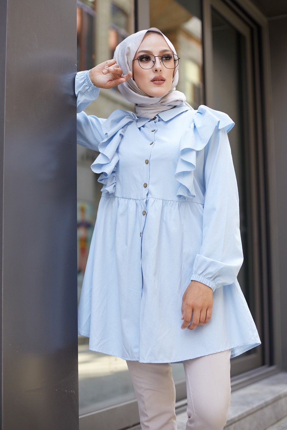 - علاوة على ذلك نجد أن هناك الكثير من التصاميم المختلفة للبلوزات التي تأتي باللون الأزرق.