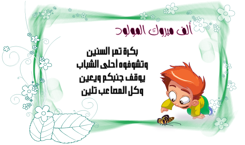 - مبارك لديك طفل جميل حلو مثل البدر ينضح وجهه بالنقاء والعذوبة وعيناه بريئة مثل الصباح.