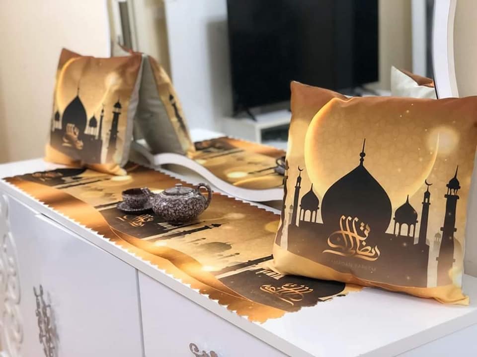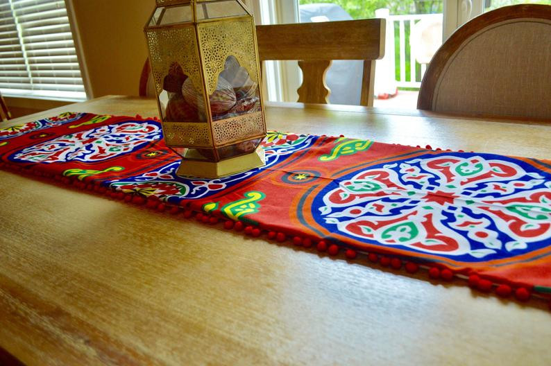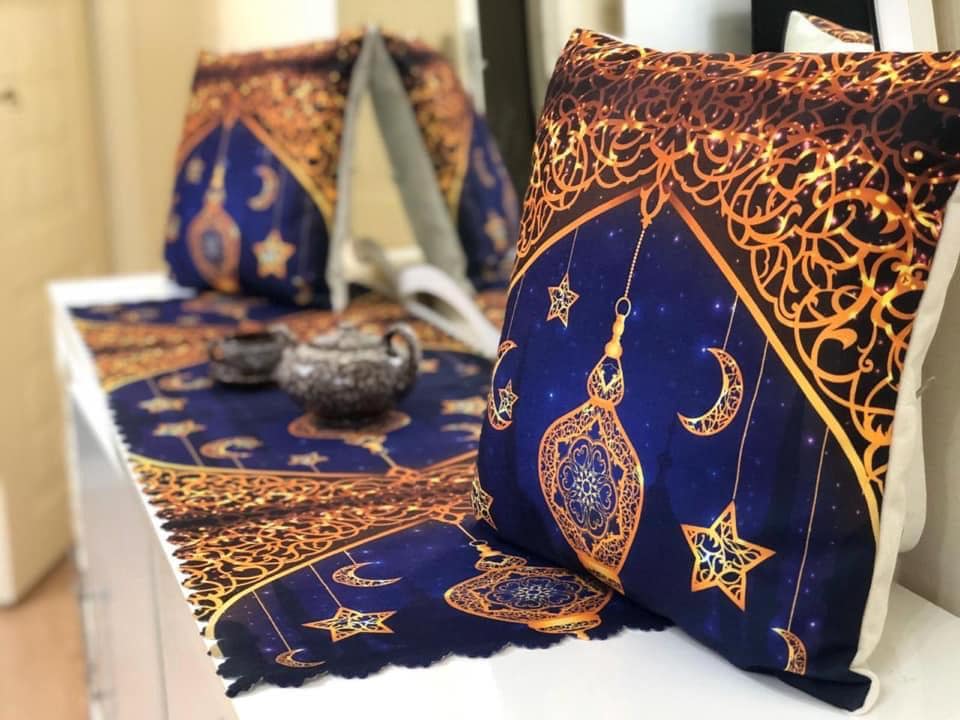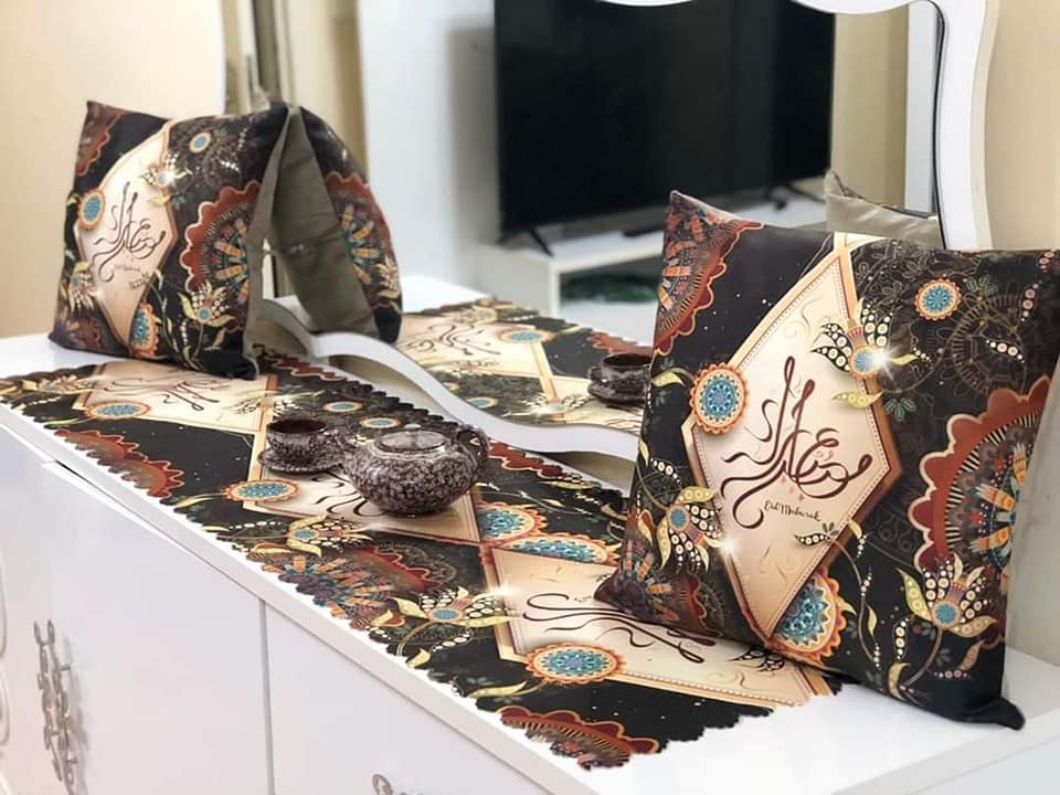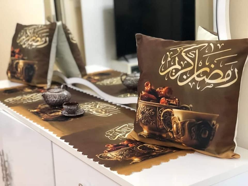 تقوم المتاجر والمحلات المختلفة بعرض أشكال متنوعة من المفارش الرمضانية، حيث يتم تصميمها بثيمات متنوعة تتماشى مع طقوس رمضان الدينية، حيث يغلب على هذه المفارش الزخارف الهندسية ذات الطابع الإسلامي.