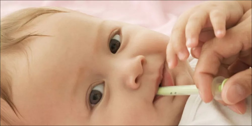 - يتم إعطاء الرضيع الفيتامين من خلال وضع القطرات على الخد من الداخل.