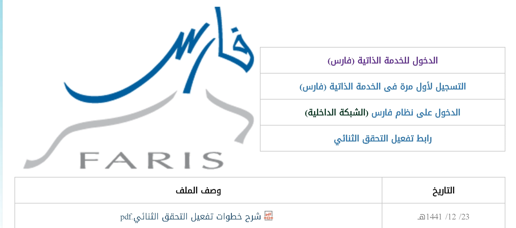 - الدخول لنظام فارس الخدمة الذاتية “من هنا“.