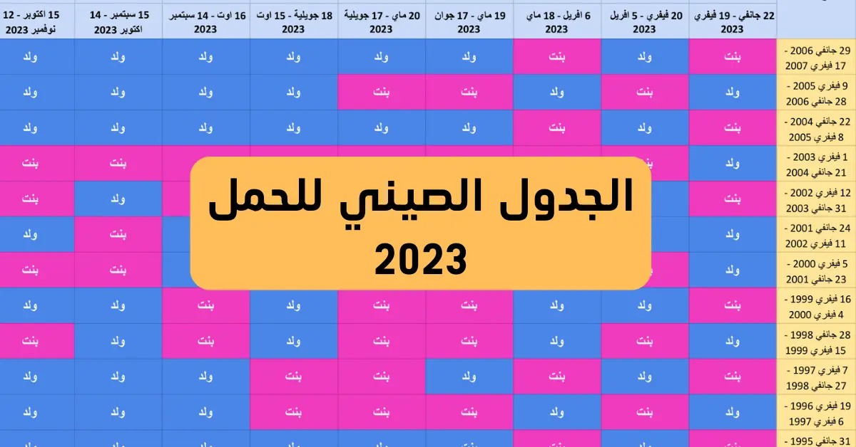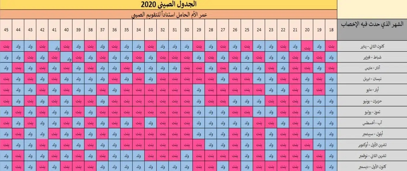 - إن الجدول الصيني ليتم تحديد جنس المولود من الطرق المسلية وليست الصحيحة.