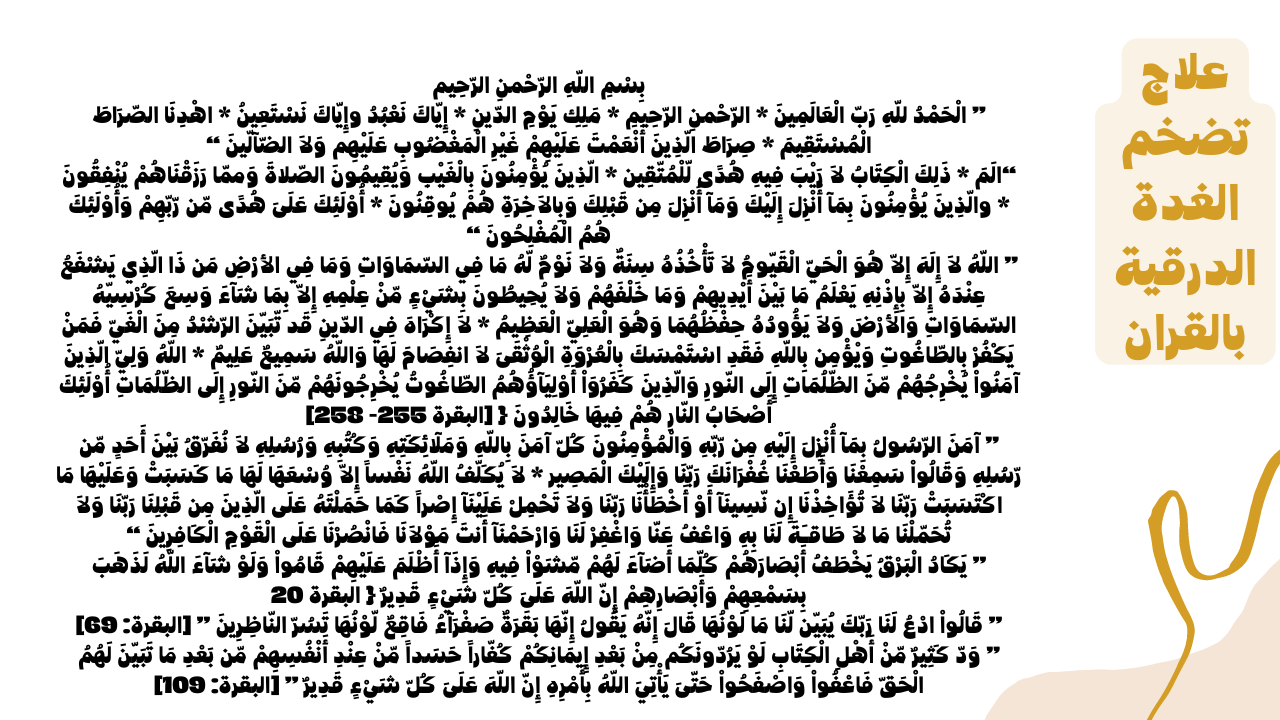 في العادة تنجم اضطرابات الغدة الدرقية في حال كان الجسم غير مكتفي من الهرمونات التي تفرزها تلك الغدة، بسبب خلل أصابها، ما يجعل هنالك بعض الأمور الغير طبيعية في الجسم، والتي تبعاً لها يصاب الإنسان بخلل بصورة كبيرة في وظائفه الحيوية والتي منها يبحث جاهداً على الحل الجذري والتي تبين أنه وعلى الرغم من وجود الدوية الكثيرة لها، إلا أن العلاج بالقرآن يبقى المتصدر على كافة العلاجات الموصوفة لتضخم الغدة الدرقية، وهذا كالآتي: