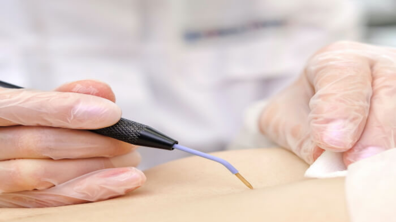 - توضع هذه الابرة على المنطقة المراد علاجها ليتم حرق الخلايا المتواجدة فيها.