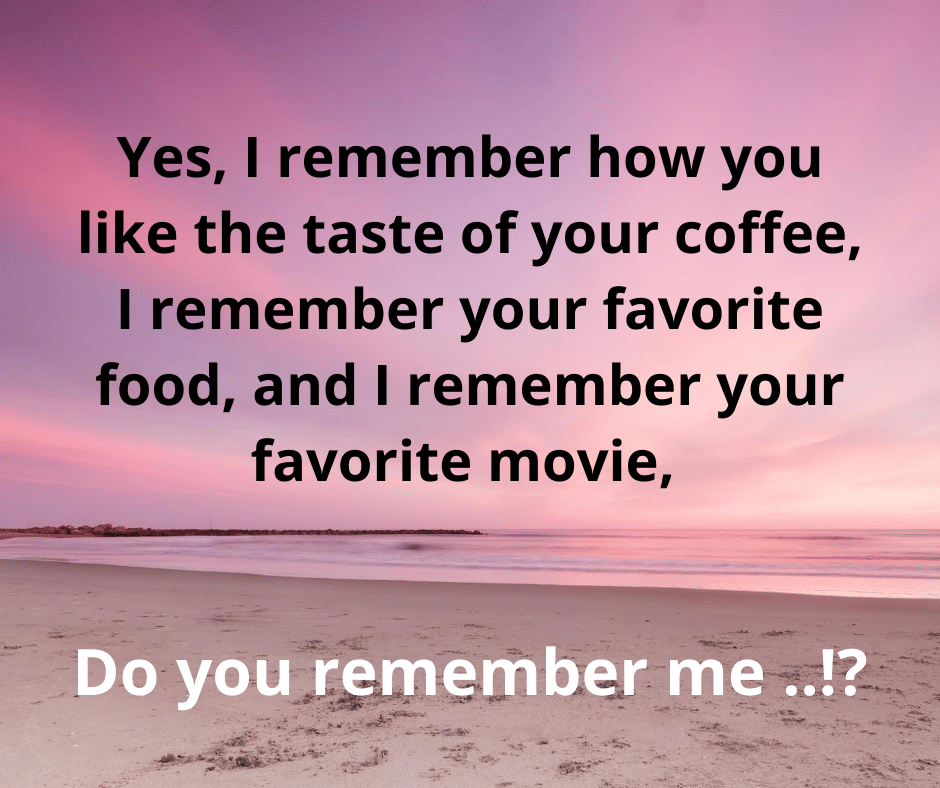 - Yes, I remember how you like the taste of your coffee, I remember your favorite food, and I remember your favorite movie, Do you remember me