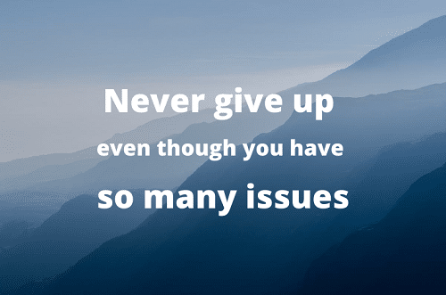 الترجمة: لا تستسلم أبدًا، بالرغم من وجود العديد من المشكلات.
