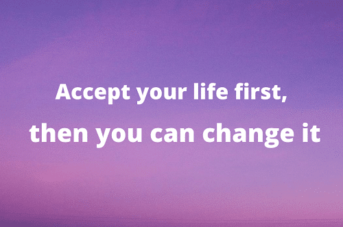الترجمة: تقبل حياتك أولاً، لكي تتمكن من تغييرها.