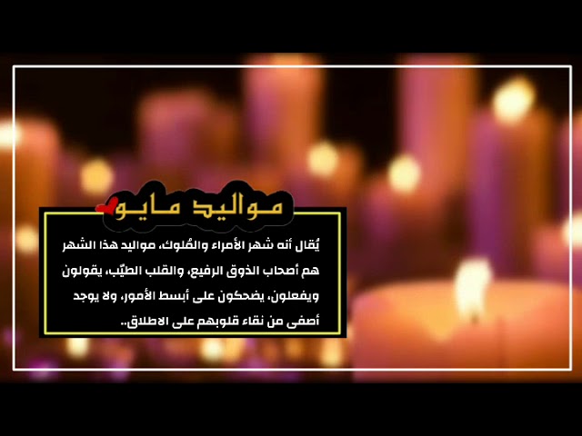 - أحلى وأجمل كلام جميل عن مواليد مايو العظيم، كل عام وكل يوم وكل دقيقة ولحظة تمر وهؤلاء الأشخاص الذي ولدوا في هذا الشهر، بخير وفي نجاح أكثر وأكثر.