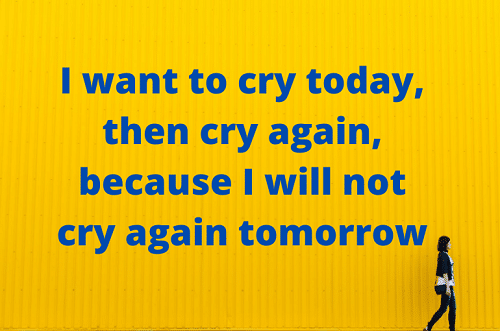 - I want to cry today, then cry again, because I will not cry again tomorrow