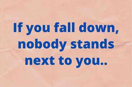 الترجمة: إذا سقطت، لا أحد يقف بجانبك.