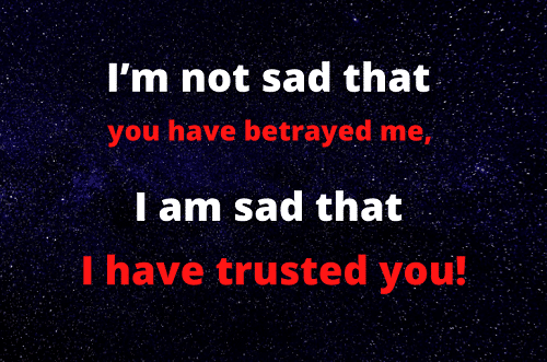 - I’m not sad that you have betrayed me, I am sad that I have trusted you
