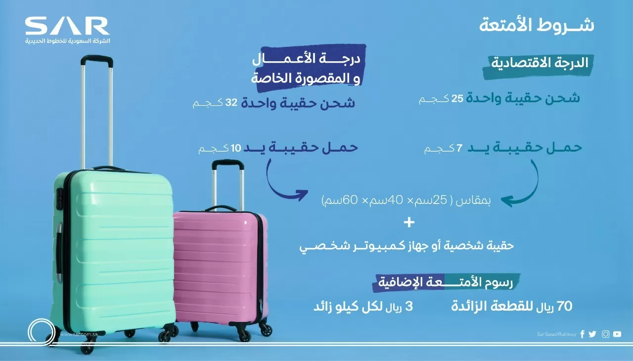 - المميز والتي يسمح بحقيبتين لا يتجاوز وزن كل حقيبة عن 32 كجم.