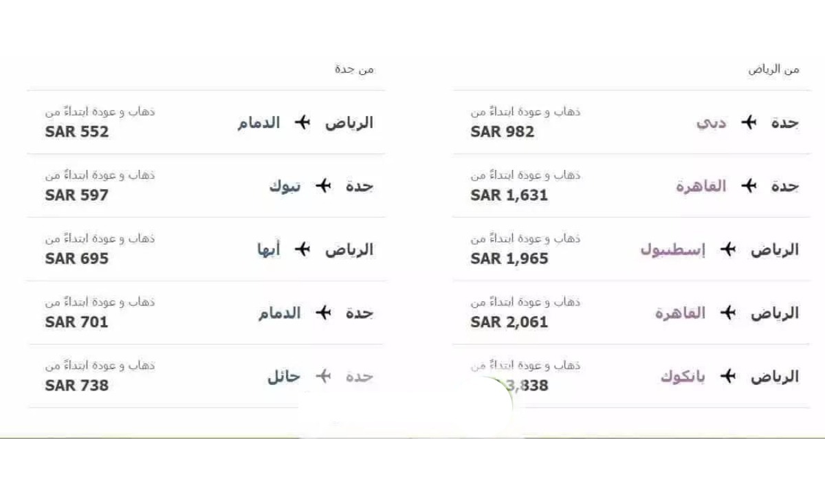 - ثالثا: سفر على متن فلاي ناس بسعر تذكرة 1600 ريال سعودي.