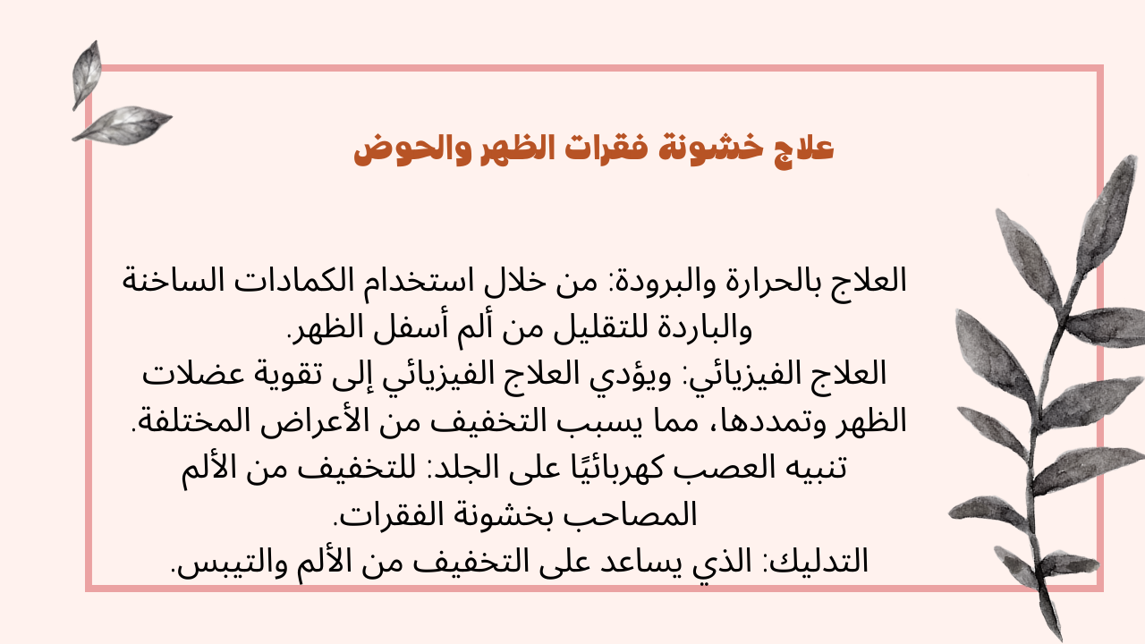 علاج خشونة فقرات الظهر بالاعشاب مجرب، لا زالت أهمية الأعشاب الطبيعية تتجلى في عدد من المشكلات الصحية التي قدمت لها الحلول الجذرية، ولا سيما المشكلات الصحية المتعلقة بآلام وأوجاع الظهر، التي عانى ولا يزال منها جملة واسعة من الأشخاص باختلاف أعمارهم وأجناسهم، إذ أصبحت من أكثر مشكلات العصر شيوعاً، والتي تردد بسببها البعض عبر الوسائل الالكترونية باحثاً عن أفضل طريقة وعلاج لها، ومن هذا المنطلق نقدم أفضل علاج خشونة فقرات الظهر بالاعشاب مجرب.