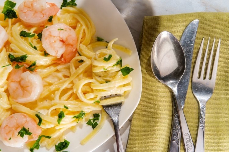 القيمة الغذائية لوجبة المعكرونة والجمبري